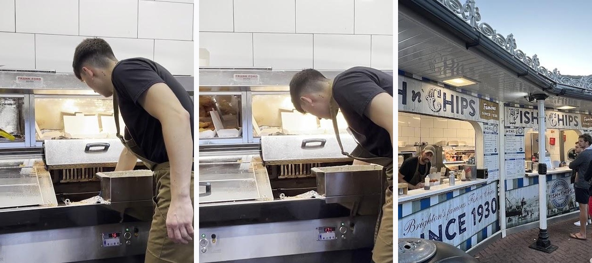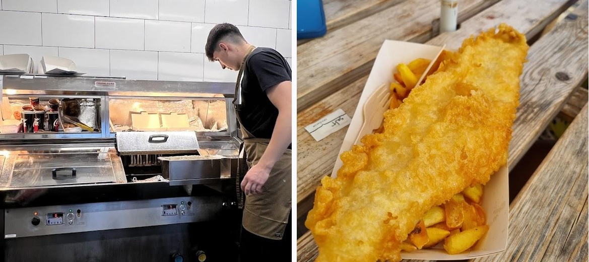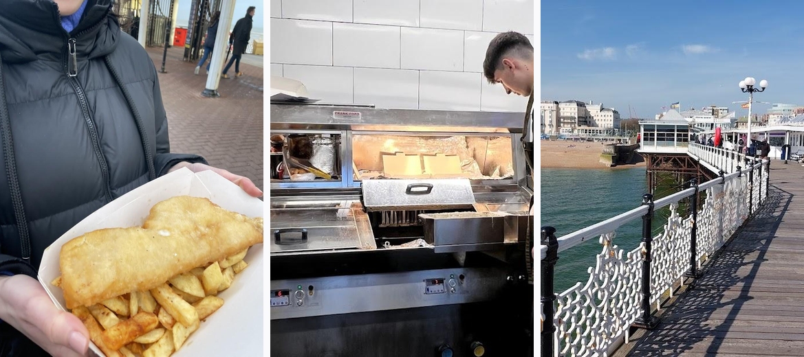 Enjoy the best Fish & Chips at Brighton Pier! Located at 256 Kings Rd, Brighton, indulge in our crispy fish batter, savory fish cakes, and freshly caught fish. Perfectly paired with malt vinegar, our takeaway is a delicious seaside treat you won't want to miss!